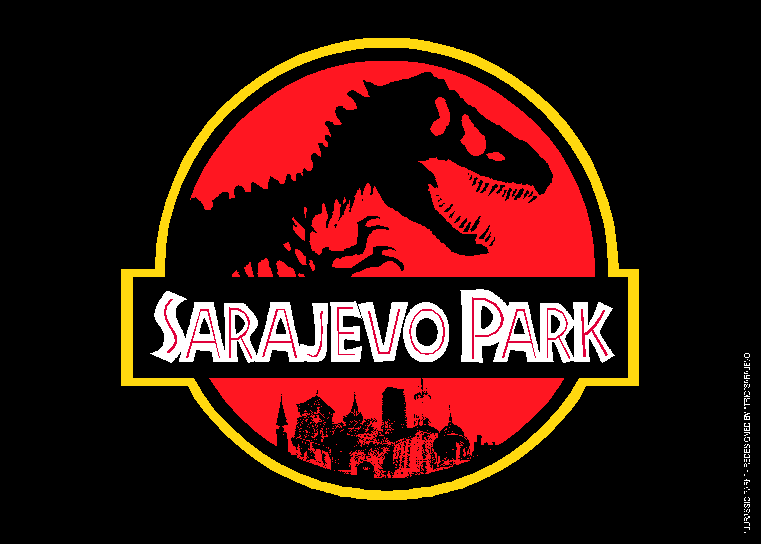 “In April 1992 the Bosnian war began, and Sarajevo was besieged. Despite the obvious hardships of life in a city under siege for two and a half years, and although they had many opportunities to continue work outside Bosnia-Herzegovina, TRIO opted to remain in Sarajevo throughout the war. Faced with a market suddenly reduced to a 3km wide stretch of a city under siege, TRIO have nonetheless continued to earn a living as commercial designers, receiving payment for their work in food, cigarettes and (occasionally) small amounts of money. During the war TRIO have managed to assemble a computerised design office put together from various components which were borrowed or begged from friends and colleagues in Sarajevo.... In addition to their regular work, TRIO have also invested a great deal of time putting together a collection of graphic art aimed at raising awareness of the plight of their city throughout Europe. The work which has made them famous in western capitals is based on a series of reworkings of well-known advertising and pop-art images, such as the logos for Speilberg’s Jurassic Park, Coca-Cola, Absolut Vodka, Warhol’s famous Campbell’s Soup, and satirical adaptations of famous posters, such as Monroe’s Some Like it Hot, Your Country Needs You, Wake Up America!, Munch’s Scream, and many more.”